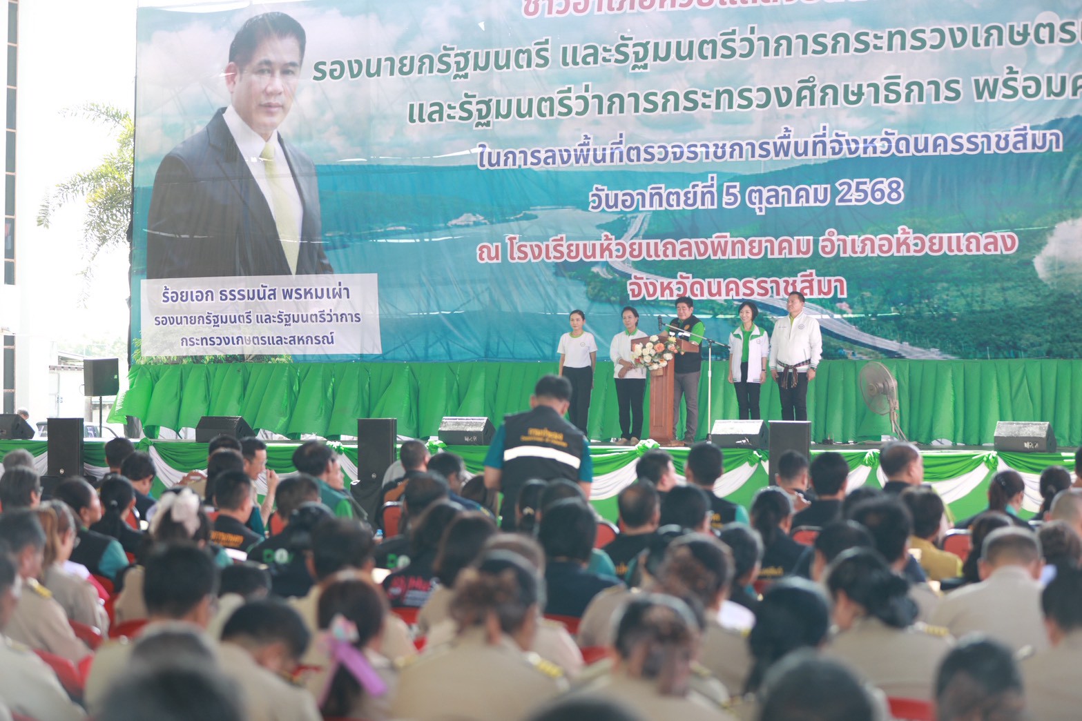 วันที่ 5 ตุลาคม 2568 เวลา 10.30 น. นายราเชน ศิลปะรายะ อธิบดีกรมฝนหลวงและการบินเกษตร มอบหมายให้ นายปราบพล โล่ห์วีระ รองอธิบดีกรมฝนหลวงและการบินเกษตร ด้านปฏิบัติการ พร้อมกับนางสาวหนึ่งหทัย ตันติพลับทอง ผู้อำนวยการศูนย์ปฏิบัติการฝนหลวงภาคตะวันออกเฉียงเหนือ(ตอนล่าง) จังหวัดบุรีรัมย์ ร่วมลงพื้นที่ตรวจราชการจังหวัดนครราชสีมา โดยมีร้อยเอกธรรมนัส พรหมเผ่า รองนายกรัฐมนตรี และรัฐมนตรีว่าการกระทรวงเกษตรและสหกรณ์ เป็นประธาน นำคณะผู้บริหารภายในสังกัดกระทรวงเกษตรและสหกรณ์ ลงพื้นที่ตรวจราชการ ณ โรงเรียนมัธยมด่านขุนทด ตำบลด่านขุนทด อำเภอด่านขุนทด และโรงเรียนห้วยแถลงพิทยาคม ตำบลห้วยแถลง อำเภอห้วยแถลง จังหวัดนครราชสีมา